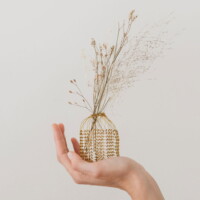 Depuis 2017, Cécile Gray a mis au point sa propre technique de maillage métallique à partir de fil d’or assemblés les uns avec les autres par sertissage. Au fil de ses recherches, elle décline les grilles pour créer de nombreuses variations de motifs et de volumes.