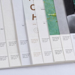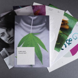 - Trois types de papier avec Gmund Hanf 100 %, Gmund Hanf 50 % et Gmund Hanf 10 %